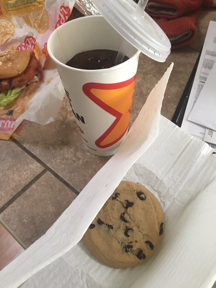 Charbroiled all-beef patty topped with American cheese, dill pickles, ketchup and mustard on a plain bun. Served with kids drink, kids fry, and chocolate chip cookie.